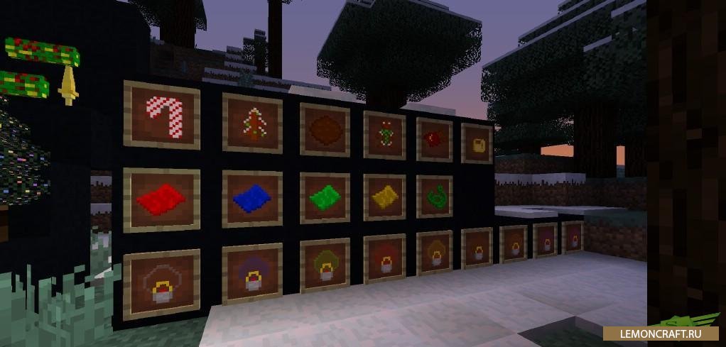 Мод Christmas Festivities принесет в игру майнкрафт атмосферу рождества. Появятся новогодние угощения, на деревьях будут развешаны игрушки. Сладкие палочки, полосатые, можно использовать в качестве топлива.