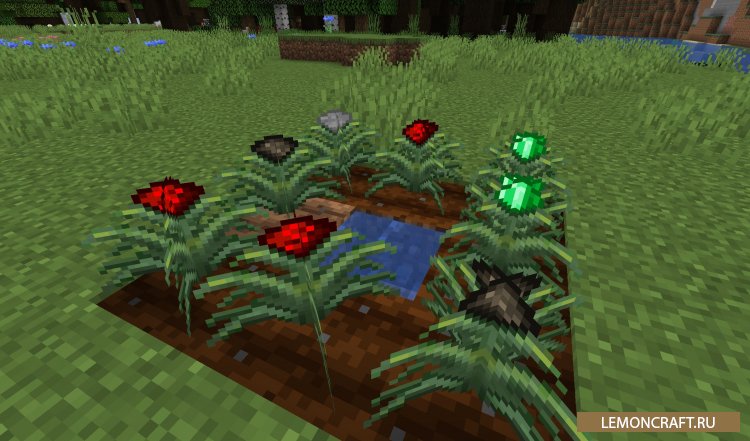 Мод на выращивание руд Magical Crops: Regrowth это доработка мода Magical Crops, с помощью которой вы сможете выращивать ванильные материалы и руды. Для выращивания руд и материалов вам нужно будет найти особую эссенцию - флориум, которую можно добыть просто сломав блок травы.